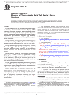 ASTM F3618-22 - Standard Practice for Cleaning of Thermoplastic Solid Wall Sanitary Sewer Pipelines