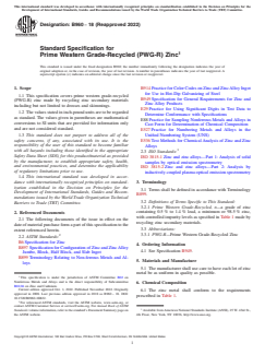 ASTM B960-18(2022) - Standard Specification for Prime Western Grade-Recycled (PWG-R) Zinc