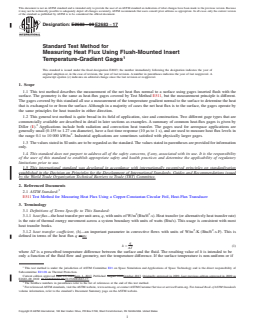 1.1 This test method describes the measurement of the net heat flux normal to a surface using gages inserted flush with the surface. The geometry is the same as heat-flux gages covered by Test Method E511, but the measurement principle is different. The gages covered by this standard all use a measurement of the temperature gradient normal to the surface to determine the heat that is exchanged to or from the surface. Although in a majority of cases the net heat flux is to the surface, the gages operate by the same principles for heat transfer in either direction.