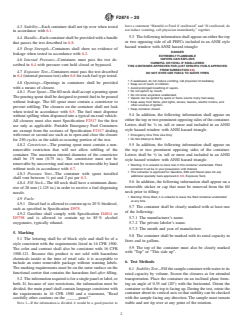 • Capacity and Volume: Specifies that the container’s maximum rated capacity shall not exceed 5 liters (1.3 gallons), with total volume at least 5% greater than the rated capacity.