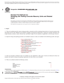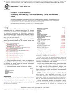 1.1 These test methods provide various testing procedures commonly used for evaluating characteristics of concrete masonry units and related concrete units. Methods are provided for sampling, measurement of dimensions, compressive strength, absorption, unit weight (density), moisture content, flexural load, and ballast weight. Not all methods are applicable to all unit types, however.