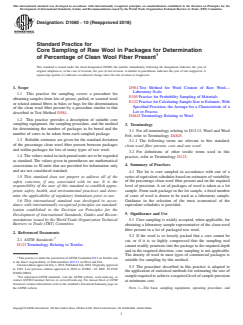 ASTM D1060-10(2018) - Standard Practice for Core Sampling of Raw Wool in Packages for Determination of Percentage of Clean Wool Fiber Present