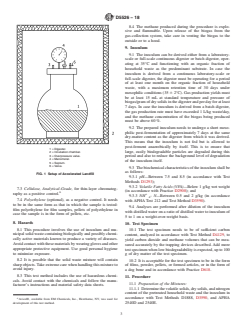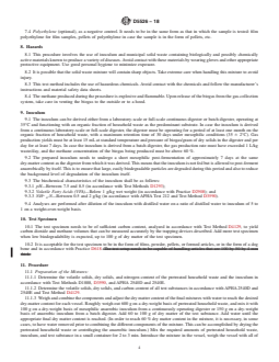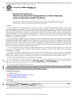 5.3 Limitations—Because a wide variation exists in the construction and operation of landfills, and because regulatory requirements for landfills vary greatly, this procedure is not intended to simulate the environment of all landfills. However, it is expected to closely resemble the environment of a biologically active landfill. More specifically, the procedure is intended to create a standard laboratory environment that permits rapid and reproducible determination of the anaerobic biodegradability under accelerated landfill conditions, while at the same time producing reproducible mixtures of fully and partially decomposed household waste with plastic materials for ecotoxicol...
