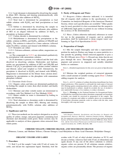 ASTM D126-87(2023): Standard Test Methods for Analysis of Yellow, Orange, and Green Pigments Containing Lead Chromate and Chromium Oxide Green provides a comprehensive set of chemical procedures for the analysis and quality control of pigments comprising lead chromate and chromium oxide green. Developed under ASTM Committee D01 on Paint and Related Coatings, these methods are recognized for use by various industries, including those serving the U.S. Department of Defense, and adhere to internationally accepted standardization principles.