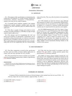 ASTM F1586-21 is a technical specification published by ASTM International. Its full title is "Standard Specification for Wrought Nitrogen Strengthened 21Chromium-10Nickel-3Manganese-2.5Molybdenum Stainless Steel Alloy Bar for Surgical Implants (UNS S31675)". This standard covers: ABSTRACT This specification covers the chemical composition, mechanical, and metallurgical requirements for wrought nitrogen strengthened 21chromium-10nickel-3manganese-2.5molybdenum stainless steel alloy bars for use in surgical implants. The alloy bars shall be furnished in the annealed, medium hard, or hard condition, and shall be finished cold-drawn, pickled, ground, ground and polished, or as specified by the purchaser. SCOPE 1.1 This specification covers the chemical, mechanical, and metallurgical requirements for wrought nitrogen strengthened 21chromium-10nickel-3manganese-2.5molybdenum stainless steel alloy bar for surgical implants. 1.2 The values stated in either inch-pound units or SI units are to be regarded separately as standard. The values stated in each system may not be exact equivalents; therefore, each system shall be used independently of the other. Combining values from the two systems may result in nonconformance with the standard. 1.3 This international standard was developed in accordance with internationally recognized principles on standardization established in the Decision on Principles for the Development of International Standards, Guides and Recommendations issued by the World Trade Organization Technical Barriers to Trade (TBT) Committee.