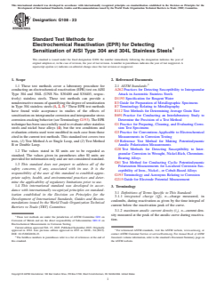ASTM G108-23 - Standard Test Methods for Electrochemical Reactivation (EPR) for Detecting Sensitization of AISI Type 304 and 304L Stainless Steels