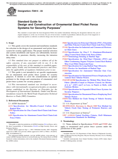 1.3 This guide is not intended to set specific requirements for an ornamental steel picket fence system for security purposes. It intends to cover the considerations or options pertinent to the design and construction of ornamental steel picket fence systems for security purposes.
