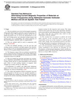 ASTM A343/A343M-14(2019) - Standard Test Method for Alternating-Current Magnetic Properties of Materials at Power Frequencies Using Wattmeter-Ammeter-Voltmeter Method and 25-cm Epstein Test Frame