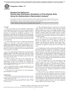 ASTM D7928-21e1 - Standard Test Method for Particle-Size Distribution (Gradation) of Fine-Grained Soils Using the Sedimentation (Hydrometer) Analysis