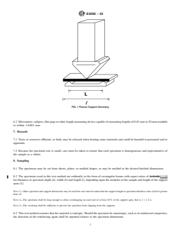 NOTE 3—Other specimen and support dimensions may be used but care must be taken that the support length to specimen thickness ratio (L/d) be greater