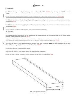 material. The deflection of the test specimen is recorded as a function of temperature. The temperature at which a predetermined