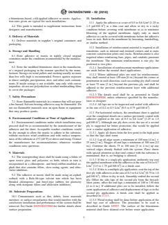 SIGNIFICANCE AND USE 4.1 This guide outlines general procedures for the storage and application of various prefabricated sheets made using modified bituminous materials and intended for use as below-grade and below-wearing-surface waterproofing. 4.2 The substrate used for applications described in this guide shall be concrete or masonry. 4.3 This application consists of a prefabricated reinforced modified bituminous sheet applied to a suitable substrate using a bituminous-based, cold-applied adhesive or mastic. Application rates given are typical for such installations. 4.4 This guide is intended to supplement instructions from designers and manufacturers. SCOPE 1.1 This guide lists application and installation requirements for fully adhered, cold-applied, prefabricated modified bituminous membrane waterproofing systems for below-grade or below-wearing-surface (such as plaza decks) vertical or horizontal applications. 1.2 For the purposes of this application guide, the substrate is assumed to be structurally sound, sloped to drain (if new construction), and meeting the local building code requirements. Similarly, the system components are assumed to comply with all federal, state, and local requirements in effect at the time of installation. 1.3 The values stated in either SI units or inch-pound units are to be regarded separately as standard. The values stated in each system may not be exact equivalents; therefore, each system shall be used independently of the other. Combining values from the two systems may result in non-conformance with the standard. 1.4 This guide may involve hazardous materials, operations, and equipment. This standard does not purport to address all of the safety concerns, if any, associated with its use. It is the responsibility of the user of this standard to establish appropriate safety, health, and environmental practices and determine the applicability of regulatory requirements prior to use. 1.5 This international standard was developed in accordance with internationally recognized principles on standardization established in the Decision on Principles for the Development of International Standards, Guides and Recommendations issued by the World Trade Organization Technical Barriers to Trade (TBT) Committee.