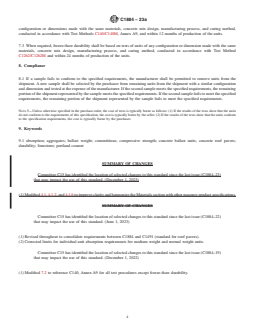 ASTM C1884-23a is a technical specification published by ASTM International. Its full title is "Standard Specification for Manufactured Concrete Ballast Units". This standard covers: SCOPE 1.1 This specification covers dry-cast, manufactured concrete units that are primarily used for ballast applications. These units are machine-made from hydraulic cement, water, and suitable mineral aggregates with or without the inclusion of other materials. Note 1: The design of concrete ballast units systems for resisting wind uplift is beyond the scope of this specification. Building codes and other standards should be consulted in designing for wind uplift resistance. Note 2: Previously, there were two standards that covered units used for ballast. Specification C1491 was for concrete roof pavers, primarily used for roof ballast and protection of roof membrane. Specification C1884 was for units for ballast for rooftop equipment. Due to the similarity in these units and application, this standard now serves as the single standard for manufactured concrete units used in all ballast applications. 1.2 The text of this standard references notes and footnotes that provide explanatory material. These notes and footnotes (excluding those in tables and figures) shall not be considered as requirements of the standard. 1.3 The values stated in inch-pound units are to be regarded as standard. The values given in parentheses are mathematical conversions to SI units that are provided for information only and are not considered standard. 1.4 This standard does not purport to address all of the safety concerns, if any, associated with its use. It is the responsibility of the user of this standard to establish appropriate safety, health, and environmental practices and determine the applicability of regulatory limitations prior to use. 1.5 This international standard was developed in accordance with internationally recognized principles on standardization established in the Decision on Principles for the Development of International Standards, Guides and Recommendations issued by the World Trade Organization Technical Barriers to Trade (TBT) Committee.