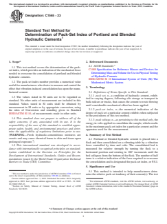 Keywords: ASTM C1565-23, pack-set index, portland cement, blended hydraulic cement, cement flowability, cement consolidation, cement testing standard, bulk cement handling, cement quality control.