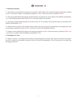 7.5 Samples cut from forging shall conform to the mechanical properties of Table 3 when heat treated as specified in Tables 2 and