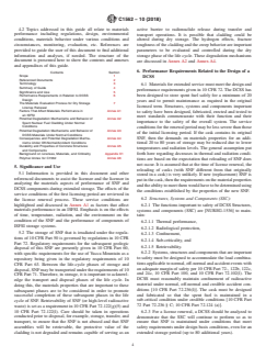 SIGNIFICANCE AND USE 5.1 Information is provided in this document and other referenced documents to assist the licensee and the licensor in analyzing the materials aspects of performance of SNF and DCSS components during extended storage. The effects of the service conditions of the first licensing period are reviewed in the license renewal process. These service conditions are highlighted and discussed in Annex A1 as factors that affect materials performance in an ISFSI. Emphasis is on the effects of time, temperature, radiation, and the environment on the condition of the SNF and the performance of components of ISFSI storage systems. 5.2 The storage of SNF that is irradiated under the regulations of 10 CFR Part 50 is governed by regulations in 10 CFR Part 72. Regulatory requirements for the subsequent geologic disposal of this SNF are presently given in 10 CFR Part 60, with specific requirements for the use of Yucca Mountain as a repository being given in the regulatory requirements of 10 CFR Part 63. Between the life-cycle phases of storage and disposal, SNF may be transported under the requirements of 10 CFR Part 71. Therefore, in storage, it is important to acknowledge the transport and disposal phases of the life cycle. In doing this, the materials properties that are important to these subsequent phases are to be considered in order to promote successful completion of these subsequent phases in the life cycle of SNF. Retrievability of SNF (or high-level radioactive waste) is set as a requirement in 10 CFR Part 72.122(g)(5) and 10 CFR Part 72.122(l). Care should be taken in operations conducted prior to disposal, for example, storage, transfer, and transport, to ensure that the SNF is not abused and that SNF assemblies will be retrievable, the protective value of the cladding is not degraded and remains capable of serving as an active barrier to radionuclide release during transfer and transport operations. It is possible that cladding could be altered during dry storage. The ... SCOPE 1.1 Part of the total inventory of commercial spent nuclear fuel (SNF) is stored in dry cask storage systems (DCSS) under licenses granted by the U.S. Nuclear Regulatory Commission (NRC). The purpose of this guide is to provide information to assist in supporting the renewal of these licenses, safely and without removal of the SNF from its licensed confinement, for periods beyond those governed by the term of the original license. This guide provides information on materials behavior under conditions that may be important to safety evaluations for the extended service of the renewal period. This guide is written for DCSS containing light water reactor (LWR) fuel that is clad in zirconium alloy material and stored in accordance with the Code of Federal Regulations (CFR), at an independent spent-fuel storage installation (ISFSI).2 The components of an ISFSI, addressed in this document, include the commercial SNF, canister, cask, and all parts of the storage installation including the ISFSI pad. The language of this guide is based, in part, on the requirements for a dry SNF storage license that is granted, by the U.S. Nuclear Regulatory Commission (NRC), for up to 20 years. Although government regulations may differ for various nations, the guidance on materials properties and behavior given here is expected to have broad applicability. 1.2 This guide addresses many of the factors affecting the time-dependent behavior of materials under ISFSI service [10 CFR Part 72.42]. These factors are those regarded to be important to performance, in license extension, beyond the currently licensed 20-year period. Examples of these factors are given in this guide and they include materials alterations or environmental conditions for components of an ISFSI system that, over time, could have significance related to safety. For purposes of this guide, a license period of an additional 20 to 80 years is assumed. 1.3 This guide address...