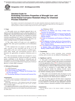 ASTM G157-98(2018) - Standard Guide for Evaluating Corrosion Properties of Wrought Iron- and Nickel-Based Corrosion Resistant Alloys for Chemical Process Industries