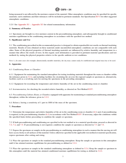 • Atmospheric Control: Detailed instructions for maintaining standard testing atmospheres (humidity and temperature) using conditioning rooms or chambers.
