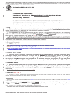 REDLINE ASTM D971-20 - Standard Test Method for Interfacial Tension of Insulating Liquids Against Water by the Ring Method