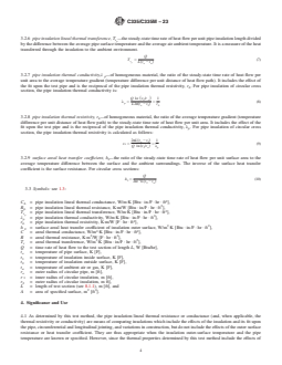 4.2 The pipe insulation lineal thermal transference incorporates both the effect of the insulation and its fit upon the pipe and also the effect of the surface heat-transfer coefficient. It is appropriate when the ambient conditions and the pipe temperature are known or specified and the thermal effects of the surface are to be included.