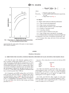ASTM F14-80(2019) is a standard published by ASTM International. Its full title is "Standard Practice for Making and Testing Reference Glass-Metal Bead-Seal". This standard covers: SIGNIFICANCE AND USE 4.1 The term reference as employed in this practice implies that both the glass and the metal of the reference glass-metal seal will be a standard reference material such as those supplied for other physical tests by the National Institute of Standards and Technology, or a secondary reference material whose sealing characteristics have been determined by seals to a standard reference material (see NIST Special Publication 260).4 Until standard reference materials for seals are established by the NIST, secondary reference materials may be agreed upon between producer and user.5 SCOPE 1.1 This practice covers procedures for preparing and testing reference glass-to-metal bead-seals for determining the magnitude of thermal expansion (or contraction) mismatch between the glass and metal. Tests are in accordance with Test Method F218 (see Section 2). 1.2 This practice applies to all glass-metal combinations, established or experimental, particularly those intended for electronic components. 1.3 The practical limit of the test in devising mismatch is approximately 300 ppm, above which the glass is likely to fracture. 1.4 This standard does not purport to address all of the safety concerns, if any, associated with its use. It is the responsibility of the user of this standard to establish appropriate safety, health, and environmental practices and determine the applicability of regulatory limitations prior to use. 1.5 This international standard was developed in accordance with internationally recognized principles on standardization established in the Decision on Principles for the Development of International Standards, Guides and Recommendations issued by the World Trade Organization Technical Barriers to Trade (TBT) Committee.