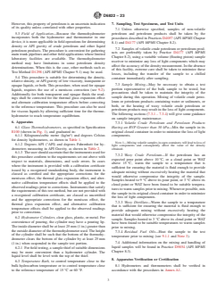 - Density and API Gravity Determination: Establishes measurement procedures for both transparent and opaque petroleum liquids using a glass thermohydrometer - a device that incorporates a hydrometer and thermometer in one unit.