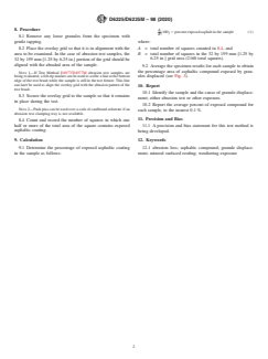 - Testing Procedures: The method involves the use of a magnifier, a transparency overlay grid, and an appropriate light source to visually inspect and quantify the exposed asphalt areas.