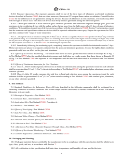 ASTM C920-18 is a technical specification published by ASTM International. Its full title is "Standard Specification for Elastomeric Joint Sealants". This standard covers: ABSTRACT This specification covers the properties of a cured single- or multicomponent cold-applied elastomeric joint sealant for sealing, caulking, or glazing operations on buildings, plazas, and decks for vehicular or pedestrian use, and types of construction other than highway and airfield pavements and bridges. A sealant qualifying under this specification shall be classified as to type, grade, class and use as follows: type S - a single-component sealant, type M - a multicomponent sealant, grade P - a pourable or selfleveling sealant, grade NS - a nonsag or gunnable sealant, class 100/50, class 50, class 35, class 25, class 12.5, use T, use NT, use I, use M, use G, use A, and use O. A single-component sealant shall be a uniform mixture of a consistency suitable for immediate application by hand or pressure caulking gun or by hand tool. A multicomponent chemically curing sealant shall be furnished in two or more components. A single-component and multicomponent sealant, when stored in the original unopened container at temperatures of not more than 27°C (80°F) shall be capable of meeting the requirements for at least 6 months after date of delivery. Grade P (pourable or selfleveling) sealant shall have the required flow characteristics, it shall exhibit a smooth, level surface. Grade NS or gunnable sealant shall have the required flow characteristics such that when tested in vertical displacement. Type S, grade P, and grade NS sealant shall not be less than the given extrusion rate when tested. Type M and grade P sealant, when tested shall be not less than the given extrudable rate 3 h after mixing. Use T (traffic) sealant shall have a hardness reading, after being properly cured, of not less than 25 or more than 50 when tested. Use NT (nontraffic) sealant shall have a hardness reading, after being properly cured, of not less than 15 or more than 50 when tested. The sealant shall not lose more than 7 % of its original weight or show any cracking or chalking when tested. There shall be no transfer of the sealant to the polyethylene film when tested at 72 h. The sealant shall not cause any visible stain on the top surface of a white cement mortar base when tested. The adhesion and cohesion after cyclic movement shall be tested to meet the requirements prescribed. The adhesion-in-peel test shall be performed to meet the requirements precribed. The adhesion-in-peel after ultraviolet exposure through glass shall be determined to meet the requirements prescribed. The accelerated weathering effects, and sealants exposed to continuous immersion shall be determined to meet the requirements prescribed. SIGNIFICANCE AND USE 7.1 This specification covers several classifications of sealants as described in Section 4 for various applications. It should be recognized by the purchaser or design professional that not all sealants meeting this specification are suitable for all applications and all substrates. It is essential, therefore, that the applicable type, grade, class, and use be specified so that the proper classification of sealant is provided for the intended use. Test methods relate to special standard specimen substrates of mortar, glass, and aluminum. If tests are required using substrates in addition to or other than the standard, they should be so specified for testing. SCOPE 1.1 This ASTM specification covers the properties of a cured single- or multicomponent cold-applied elastomeric joint sealant for sealing, caulking, or glazing operations on buildings, plazas, and decks for vehicular or pedestrian use, and types of construction other than highway and airfield pavements and bridges. 1.2 A sealant meeting the requirements of this specification shall be designated by the manufacturer to be one or more of the types, classes, grades, and uses defined in Section 7. 1.3 The values stated in SI units are to be regarded as the standard. The values given in parentheses are for information only. 1.4 Thi...