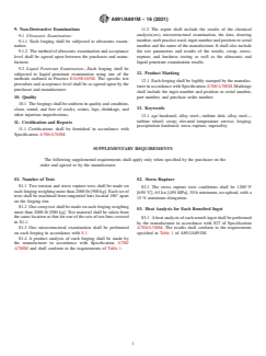 ASTM A891/A891M-16(2021) is a technical specification published by ASTM International. Its full title is "Standard Specification for Precipitation Hardening Iron Base Superalloy Forgings for Turbine Rotor Disks and Wheels". This standard covers: ABSTRACT This specification covers precipitation hardened iron base superalloy forgings which are primarily intended for use as turbine rotor disks and wheels. Two heat treatments are covered and selection will depend upon design, service conditions, mechanical properties, and elevated temperature characteristics. The material shall be made by vacuum melting followed by consumable electrode vacuum arc or electroslag remelting. The forgings shall undergo the following tests: tension test, hardness test, stress rupture test, and creep test. Also, the forgings shall be subjected to non-destructive examinations like ultrasonic examination and liquid penetrant examination. The forgings shall be uniform in quality and condition, clean, sound, and free of cracks, seams, laps, shrinkage, and other injurious imperfections. SCOPE 1.1 This specification covers precipitation hardening iron base superalloy forgings which are primarily intended for use as turbine rotor disks and wheels. 1.2 Two heat treatments are covered. Selection will depend upon design, service conditions, mechanical properties, and elevated temperature characteristics. 1.3 All of the provisions of Specification A788/A788M, apply, except as amended herein. 1.4 The values stated in either SI units or inch-pound units are to be regarded separately as standard. The values stated in each system are not necessarily exact equivalents; therefore, to ensure conformance with the standard, each system shall be used independently of the other, and values from the two systems shall not be combined. 1.5 This international standard was developed in accordance with internationally recognized principles on standardization established in the Decision on Principles for the Development of International Standards, Guides and Recommendations issued by the World Trade Organization Technical Barriers to Trade (TBT) Committee.