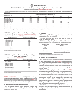 ABSTRACT This specification covers a group of general requirements for wrought seamless copper and copper alloy tube. The material shall be produced by either hot or cold working operations, or both, and shall be finished, unless otherwise specified, by such cold working and annealing or heat treatment as necessary to meet the properties specified. Dimensional requirements such as wall thickness are specified. The sampling requirements including lot size, portion size, and selection of sample pieces are given. Requirements for chemical analysis, and tension, microscopical examination, Rockwell hardness, grain size, expansion (pin), mercurous nitrate, and electrical resistivity tests are detailed. The material shall conform to the prescribed chemical composition, hardness, electrical resistivity, tensile strength, yield strength, elongation, and grain size. SCOPE 1.1 This specification covers a group of general requirements common to several wrought product specifications. Unless otherwise specified in the purchase order, or in an individual specification, these general requirements shall apply to copper and copper-alloy tube supplied under Specifications B68/B68M, B75/B75M, B135/B135M, B466/B466M, B643 and B743. 1.2 The values stated in either SI units or inch-pound units are to be regarded separately as standard. The values stated in each system may not be exact equivalents; therefore, each system shall be used independently of the other. Combining values from the two systems may result in non-conformance with the standard. 1.3 This international standard was developed in accordance with internationally recognized principles on standardization established in the Decision on Principles for the Development of International Standards, Guides and Recommendations issued by the World Trade Organization Technical Barriers to Trade (TBT) Committee.
