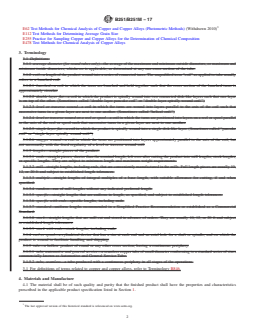 Further referenced standards include test methods for expansion (ASTM B153), hardness (ASTM E18), resistivity (ASTM B193), chemical analysis (ASTM E478), and terminology for copper and copper alloys (ASTM B846).