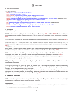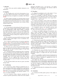 plastics that are lighter than water. This test method is suitable for products that are wet by, but otherwise not affected by water