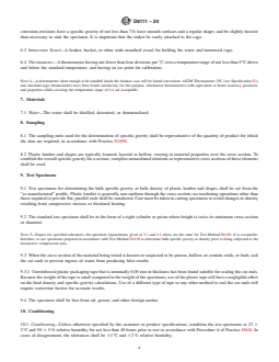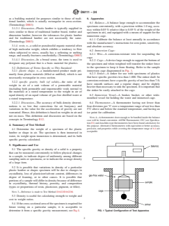 ASTM D6111-24 is a standard published by ASTM International. Its full title is "Standard Test Method for Bulk Density And Specific Gravity of Plastic Lumber and Shapes by Displacement". This standard covers: SIGNIFICANCE AND USE 5.1 The specific gravity or density of a solid is a property that can be measured conveniently to follow physical changes in a sample, to indicate degree of uniformity among different sampling units or specimens, or to indicate the average density of a large item. 5.2 It is possible that variations in density of a particular plastic lumber or shapes specimen will be due to changes in crystallinity, loss of plasticizer/solvent content, differences in degree of foaming, or to other causes. It is possible that portions of a sample will differ in density because of difference in crystallinity, thermal history, porosity, and composition (types or proportions of resin, plasticizer, pigment, or filler). Note 3: Reference is made to Test Method D1622/D1622M. 5.3 Density is useful for calculating strength to weight and cost to weight ratios. 5.4 If the cross-sectional area of the specimen is required for future testing on a particular sample, it is acceptable to determine it from a specific gravity measurement, see Eq 4. SCOPE 1.1 This test method covers the determination of the bulk density and specific gravity of plastic lumber and shapes in their “as manufactured” form. As such, this is a test method for evaluating the properties of plastic lumber or shapes as a product and not a material property test method. 1.2 This test method is suitable for determining the bulk specific gravity or bulk density by immersion of the entire item or a representative cross section in water. This test method involves the weighing of a one piece specimen in water, using a sinker with plastics that are lighter than water. This test method is suitable for products that are wet by, but otherwise not affected by water for the duration of the test. Note 1: This test method was developed for application to plastic lumber materials, but it is generic enough that it would be equally applicable to other plastic composite materials, including wood-plastic composite materials. 1.3 Plastic lumber and plastic shapes are currently made predominately from recycled plastics. However, this test method would also be applicable to similar manufactured plastic products made from virgin resins where the product is non-homogeneous in the cross-section. 1.4 The values stated in SI units are to be regarded as standard. 1.5 This standard does not purport to address all of the safety concerns, if any, associated with its use. It is the responsibility of the user of this standard to establish appropriate safety, health, and environmental practices and determine the applicability of regulatory limitations prior to use. Note 2: There is no known ISO equivalent to this test method. 1.6 This international standard was developed in accordance with internationally recognized principles on standardization established in the Decision on Principles for the Development of International Standards, Guides and Recommendations issued by the World Trade Organization Technical Barriers to Trade (TBT) Committee.