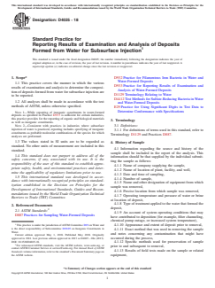 ASTM D4025-18 - Standard Practice for Reporting Results of Examination and Analysis of Deposits Formed from Water for Subsurface Injection
