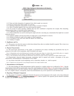 7.1 The major headings for which determinations shall be reported in a complete analysis are as indicated in Table 1. Specific