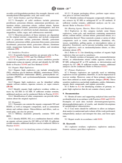 1.2 This practice establishes requirements for the use of visual, physical, analytical, and instrumental techniques that provide structural and chemical information for an identification of an explosive residue.