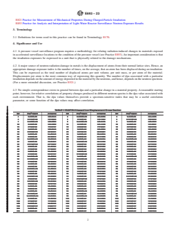 4.4 Since dpa is a construct that depends on a model of the neutron interaction processes in the material lattice, as well as the cross section (probability) for each of these processes, the value of dpa would be different if improved models or cross sections are used. The calculated displacement cross section for ferritic iron, as given in this practice, is determined by the procedure given in 6.3. The currently recommended iron displacement cross section in this practice (Table 1) wa...