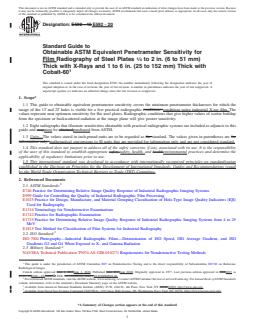 REDLINE ASTM E592-20 - Standard Guide to Obtainable ASTM Equivalent Penetrameter Sensitivity for Film Radiography of Steel Plates <fraction><num>1</num><den>4 </den> </fraction> to 2 in. (6 to 51 mm) Thick with X-Rays and 1 to 6 in. (25 to 152 mm) Thick with <brk/>Cobalt-60