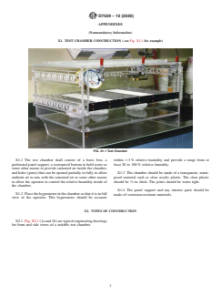 SIGNIFICANCE AND USE 5.1 The drying rate of organic coatings varies with changes in temperature, air flow, and relative humidity. In particular, the drying rate of waterborne paints depends on the evaporation of water and thus is much more dependent on relative humidity than are solvent based paints or paints that are 100 % solids. Measurement of the rate of drying of waterborne paints under ambient conditions in laboratories cannot be adequately replicated without some control of the drying conditions. A test chamber will be described that provides a means of controlling relative humidity above ambient humidity and minimizing the effects of air flow variability at ambient room temperatures. If desired, the test chamber without water in it and with vents wide open can be placed in a temperature and humidity controlled room to test dry speed at various temperatures as well as humidity while using the chamber to minimize the effect of air flow. 5.2 This practice is particularly useful for testing the drying rate of waterborne pavement marking (traffic) paints where fast dry at elevated ambient humidity is an important feature. For waterborne traffic paints, the test chamber can be used to evaluate dry to no-pick-up (Test Method D711) and water wash-off resistance (Practices D7377 and D7538) at elevated ambient humidity. SCOPE 1.1 Specification D3924 defines a standard environment of 23 ± 2°C and 50 ± 5 % relative humidity and free from drafts for normal conditioning and testing of paint, varnish, lacquer, and related materials. This practice describes a test chamber that allows for control of relative humidity above the ambient relative humidity and minimization of air flow for conditioning of test panels at elevated relative humidity and room temperatures. 1.2 The values stated in inch-pound units are to be regarded as standard. The values given in parentheses are mathematical conversions to SI units that are provided for information only and are not considered standard. 1.3 This standard does not purport to address all of the safety concerns, if any, associated with its use. It is the responsibility of the user of this standard to establish appropriate safety, health, and environmental practices and determine the applicability of regulatory limitations prior to use. 1.4 This international standard was developed in accordance with internationally recognized principles on standardization established in the Decision on Principles for the Development of International Standards, Guides and Recommendations issued by the World Trade Organization Technical Barriers to Trade (TBT) Committee.