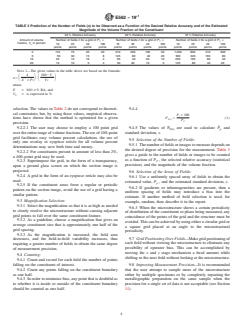 - Reporting: The standard outlines comprehensive reporting requirements, including sample description, grid and field detail, calculated values (volume fraction, standard deviation, confidence intervals, and relative accuracy), and sample preparation documentation.