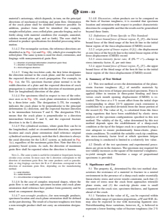 - Testing Apparatus and Procedure: Details are given for the required machines, fixtures, displacement gauges, and force calibration per ASTM E4. Accurate crack size measurement and use of certified data acquisition systems are emphasized.