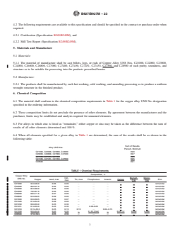 6.1 The material shall conform to the chemical composition requirements in Table 1 for the copper alloy UNS No. designation