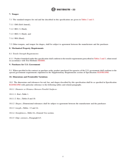 - Testing and Inspection: Outlines test methods for chemical analysis and tensile properties in accordance with referenced ASTM and international standards