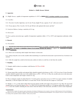 NOTE 2—If control testing is done at temperatures exceeding 550°C, some volatile salts may be lost from inorganic ash.