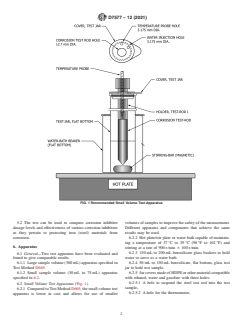 ASTM D7577-12(2021) is a standard published by ASTM International. Its full title is "Standard Test Method for Determining the Accelerated Iron Corrosion Rating of Denatured Fuel Ethanol and Ethanol Fuel Blends". This standard covers: SIGNIFICANCE AND USE 5.1 This test is designed to be used as a rapid measure of the overall relative corrosivity of Ethanol Fuel Blends (Specification D5798) and Denatured Fuel Ethanol (Specification D4806) to iron (steel). 5.2 The test can be used to compare corrosion inhibitor dosage levels and effectiveness of various corrosion inhibitors as they pertain to protecting iron (steel) materials from corrosion. SCOPE 1.1 This test method measures the ability of inhibited and uninhibited Ethanol Fuel Blends defined by Specification D5798 and Denatured Fuel Ethanol defined by Specification D4806 to resist corrosion of iron should water become mixed with the fuel, using an accelerated laboratory test method. Corrosion ratings are reported based on a visual, numbered rating scale. 1.2 The values stated in SI units are to be regarded as standard. The values in parentheses are for information only. 1.3 This standard does not purport to address all of the safety concerns, if any, associated with its use. It is the responsibility of the user of this standard to establish appropriate safety, health, and environmental practices and determine the applicability of regulatory limitations prior to use. Specific hazard statements are given in Sections 7 and 8. 1.4 This international standard was developed in accordance with internationally recognized principles on standardization established in the Decision on Principles for the Development of International Standards, Guides and Recommendations issued by the World Trade Organization Technical Barriers to Trade (TBT) Committee.