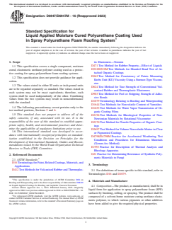 ASTM D6947/D6947M-16(2023) - Standard Specification for Liquid Applied Moisture Cured Polyurethane Coating Used in Spray Polyurethane Foam Roofing System