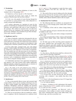 • Test conditions: The standard emphasizes the need for laminar flow, full saturation of the sample’s voids (with minimal or no air bubbles), and constant temperature, which are prerequisites for valid hydraulic conductivity measurements.