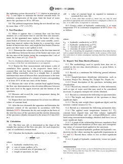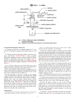 • Hydraulic conductivity measurement: The method specifies how to calculate hydraulic conductivity based on the constant flow rate of water through the specimen under a fixed hydraulic head, making allowances for multiple flow rates to verify results.