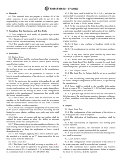 SIGNIFICANCE AND USE 4.1 Static Load Test—This test verifies that the portable high anchor device can support the design load without permanent deformation and continue to function in a safe manner. 4.2 Load Test for Failure—This test determines the force at which the portable high anchor device fails. SCOPE 1.1 This test method applies to portable high anchor devices that may be used by rescue personnel during both training exercises and actual rescue operations. 1.2 This test method covers two mechanical tests, the Static Load Test and the Load Test for Failure. 1.3 Tests contained herein are destructive in nature. Portable high anchor devices subjected to any of these tests shall not be used in any way after testing except in evaluating the results of such testing. 1.4 The values stated in either SI units or inch-pound units are to be regarded separately as standard. The values stated in each system may not be exact equivalents; therefore, each system shall be used independently of the other. Combining values from the two systems may result in nonconformance with the standard. 1.5 This specification does not imply approval of any method of use of portable high anchor devices. In addition, the tests described are laboratory tests and do not duplicate field conditions. Furthermore, the test load values contained herein are not to be interpreted as the forces which a portable high anchor device may be subjected to, or may be expected to sustain, in actual field use. 1.6 See Section 6 on Hazards for safety warning. 1.7 This international standard was developed in accordance with internationally recognized principles on standardization established in the Decision on Principles for the Development of International Standards, Guides and Recommendations issued by the World Trade Organization Technical Barriers to Trade (TBT) Committee.