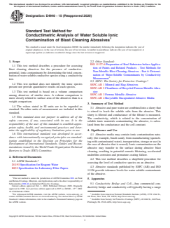 ASTM D4940-15(2020) - Standard Test Method for Conductimetric Analysis of Water Soluble Ionic Contamination of Blast Cleaning Abrasives